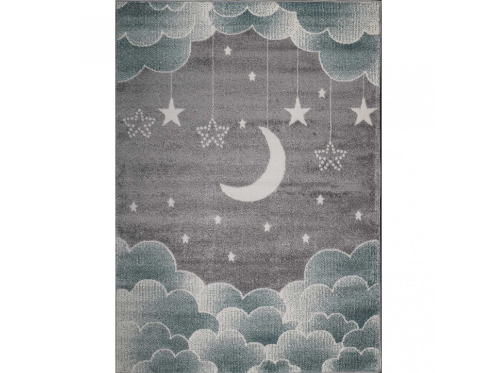 Kusový koberec do dětského pokoje, který poskytuje dítěti komfortní a příjemný prostor pro hraní s motivem noční oblohy.