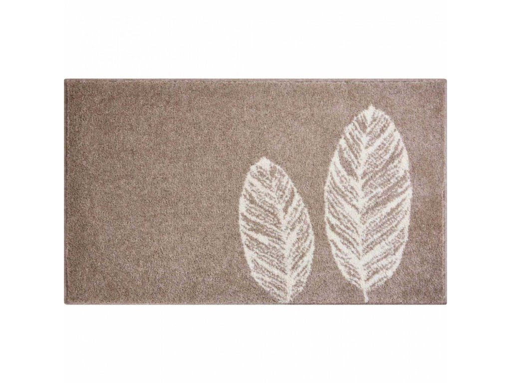 Koupelnový koberec Duetto béžové barvy s motivem listů je hebký a hřejivý. Můžete ho využít nejen v koupelně, ale i v dětském pokoji nebo ložnici.
