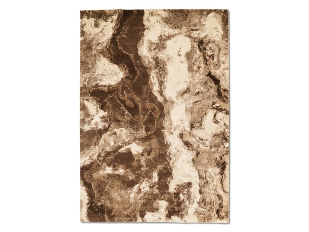 Kusový koberec s abstraktním vzorem hnědé barvy.