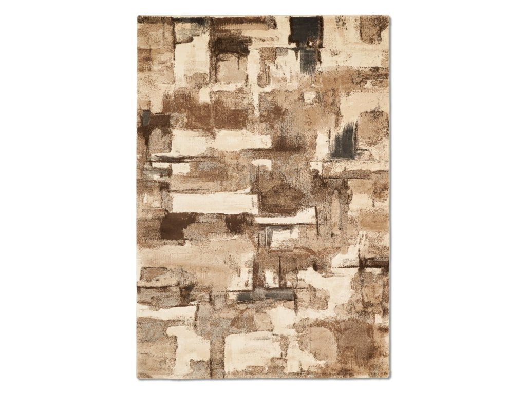 Kusový koberec s abstraktním motivem hnědé barvy.
