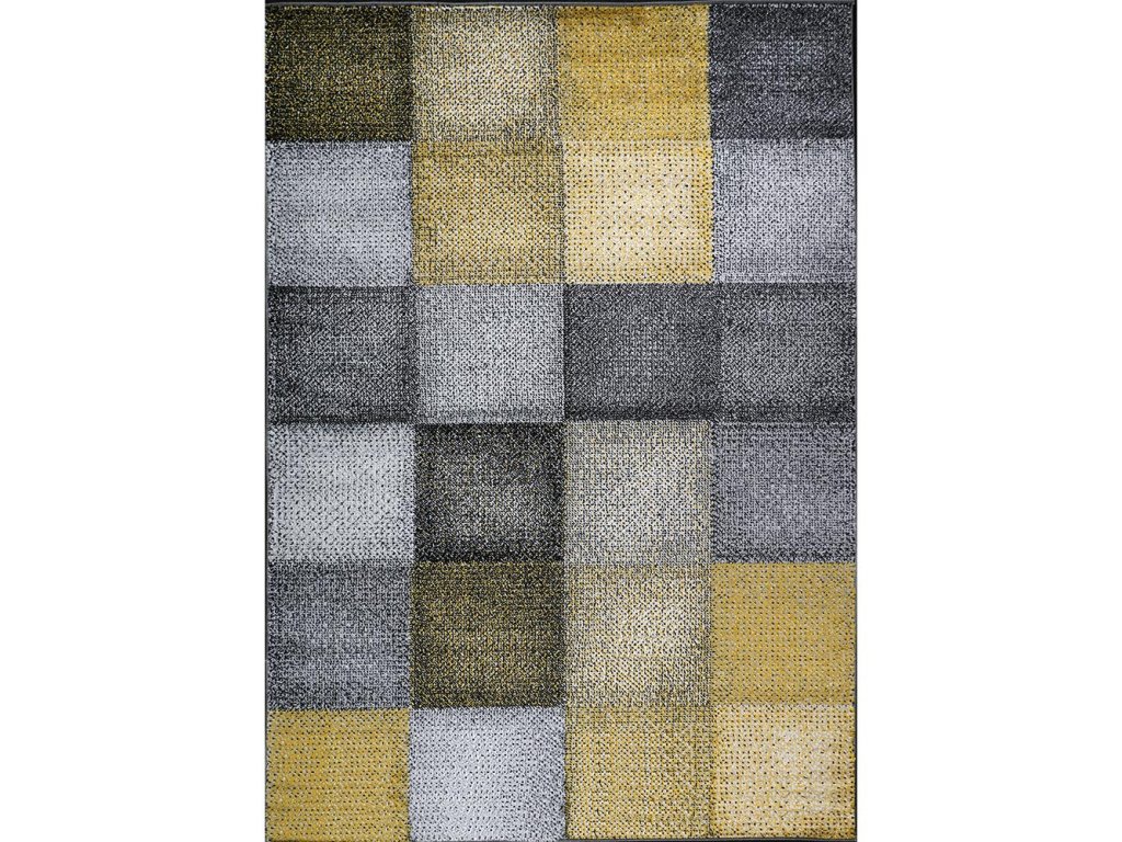 Sivo-žlutý koberec s geometrickým vzorem do obývacího pokoje či ložnice.