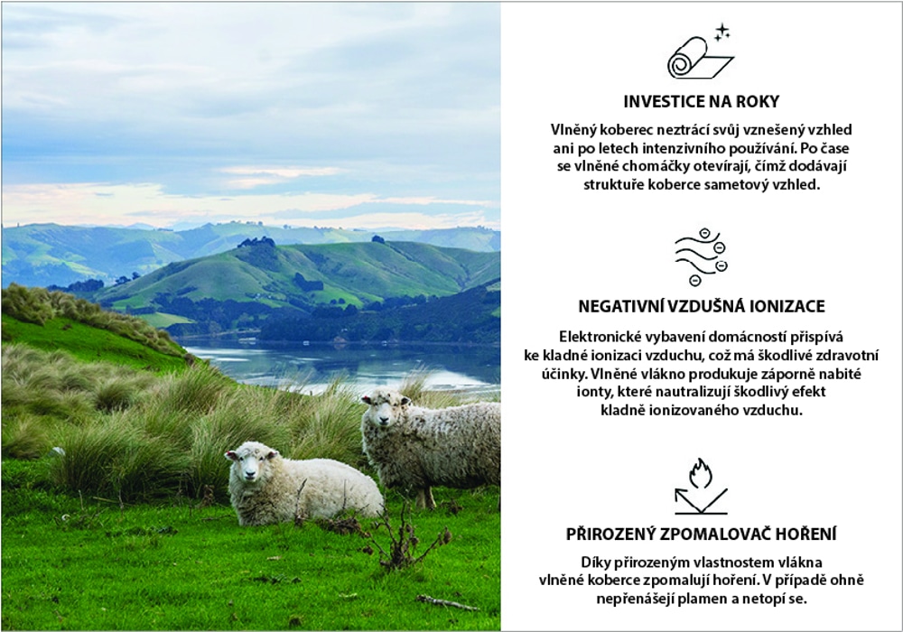V srdci kolekce Calisia je nejkvalitnější novozélandská vlna, která je známá svojí vynikající měkkostí a odolností. Hustota této vlny v kombinaci s precizně tkaným vysokým vlasem vytváří koberečky, které jsou nejen nádherně měkké na dotek, ale také výjimečně pohodlné na chůzi.