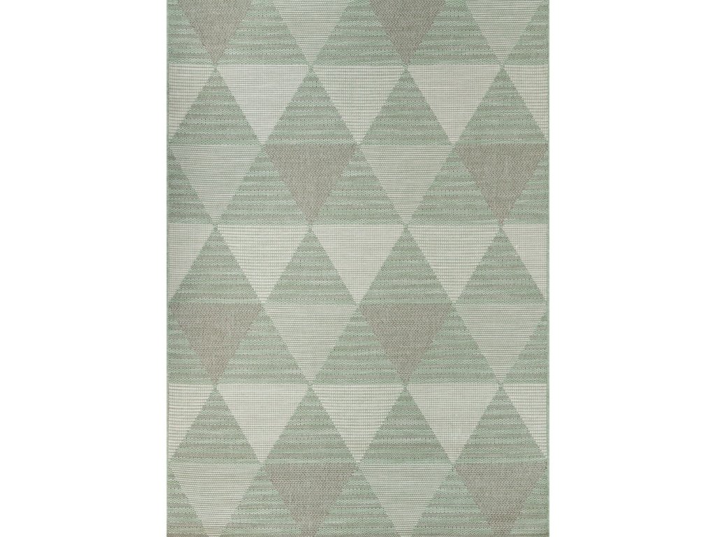 Koberec Flat ve stříbrně zeleném provedení s geometrickým trojúhelníkovým vzorem. Koberec má moderní ale neagrisivní design díky pastelové zelené barvě. Koberec pěkně doplní každý moderní interiér.