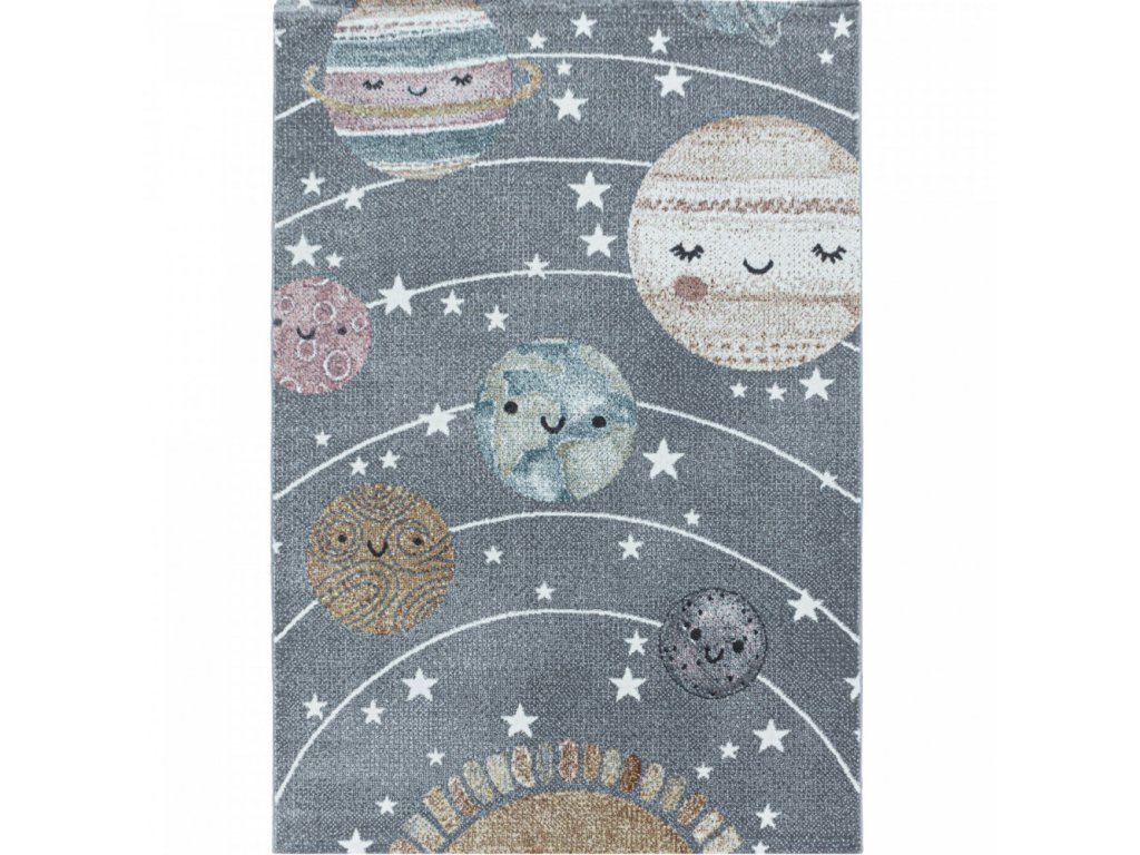 Dětský kusový koberec Funny se vzorem sluneční soustavy v šedé barvě. Koberec je vhodný do většiny dětských pokojů díky svému neutrálnímu provedení. Koberec má dlouhý střižený vlas a snadno se udržuje.>Výška vlasu: 11 mm Váha koberce: 2200 g/m2