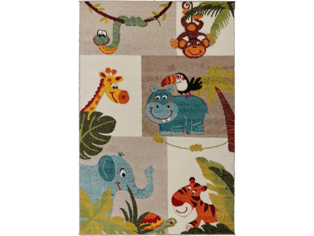 Koberec do dětského pokoje Jasper má příjemně měkký povrch a obšitý obvod. Motiv koberce tvoří veselé zvířátka na béžovém podkladu. Koberec má také reliéfní povrch.