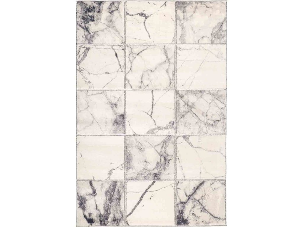 Kusový koberec mramor se vzorem rozděleným do čtverců. Polyesterové vlákno dodává koberci luxusnější vzhled.