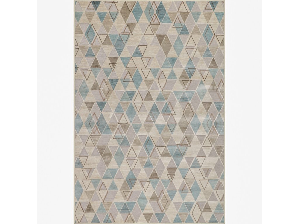 Moderní kusový koberec Nepal s geometrickým vzorem v kombinaci modré a šedé barvy bude poutavým doplňkem vašeho interiéru.