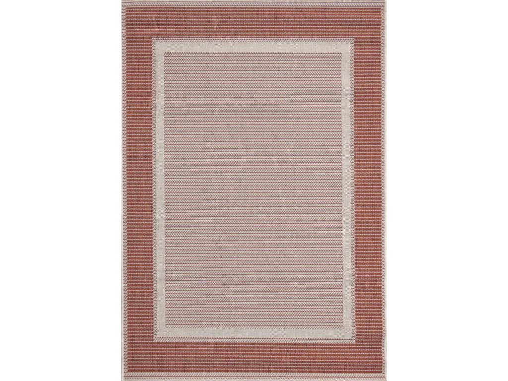 Šňůrkový, kusový koberec v kombinaci béžové a cihlové barvy.