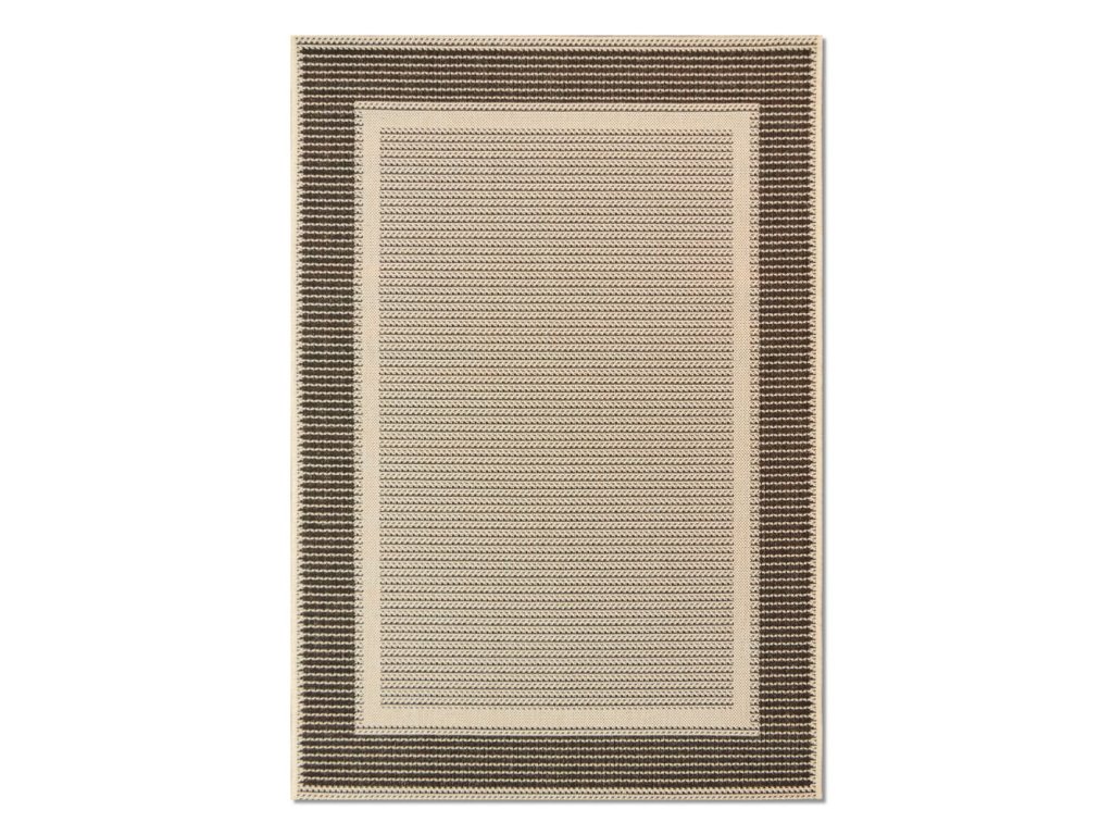 Šňůrkový kusový koberec hnědé barvy.