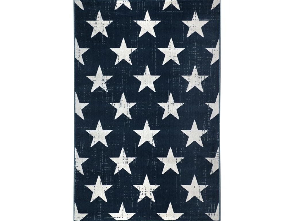 Tmavomodrý koberec Novara s bílými hvězdami reprezentuje nejnovější trendy v kobercové designu. Výborně doladí každý teenagerským či dětský interiér.