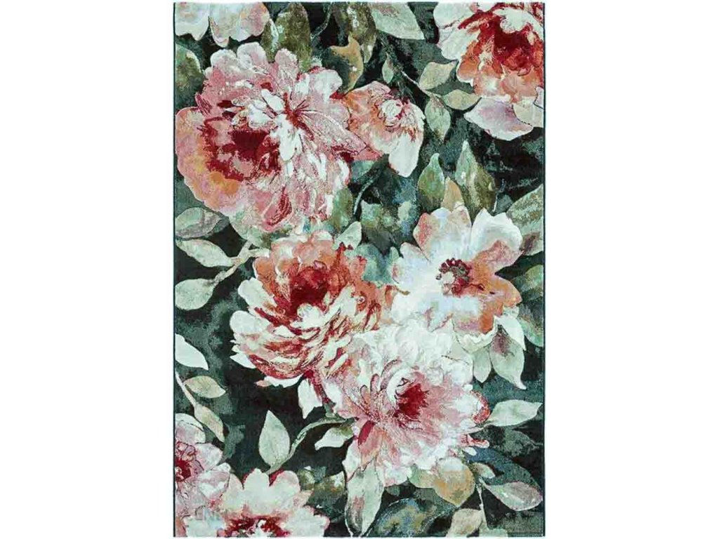 Kusový koberec s květinovým vzorem.