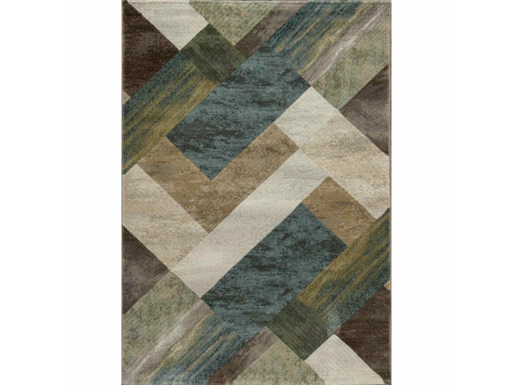 Luxusní moderní kusový koberec s geometrickými barvami s převládající zelenou barvou.