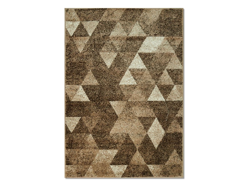 Kusový koberec hnědé barvy se spoustou trojúhelníků ve vzoru.