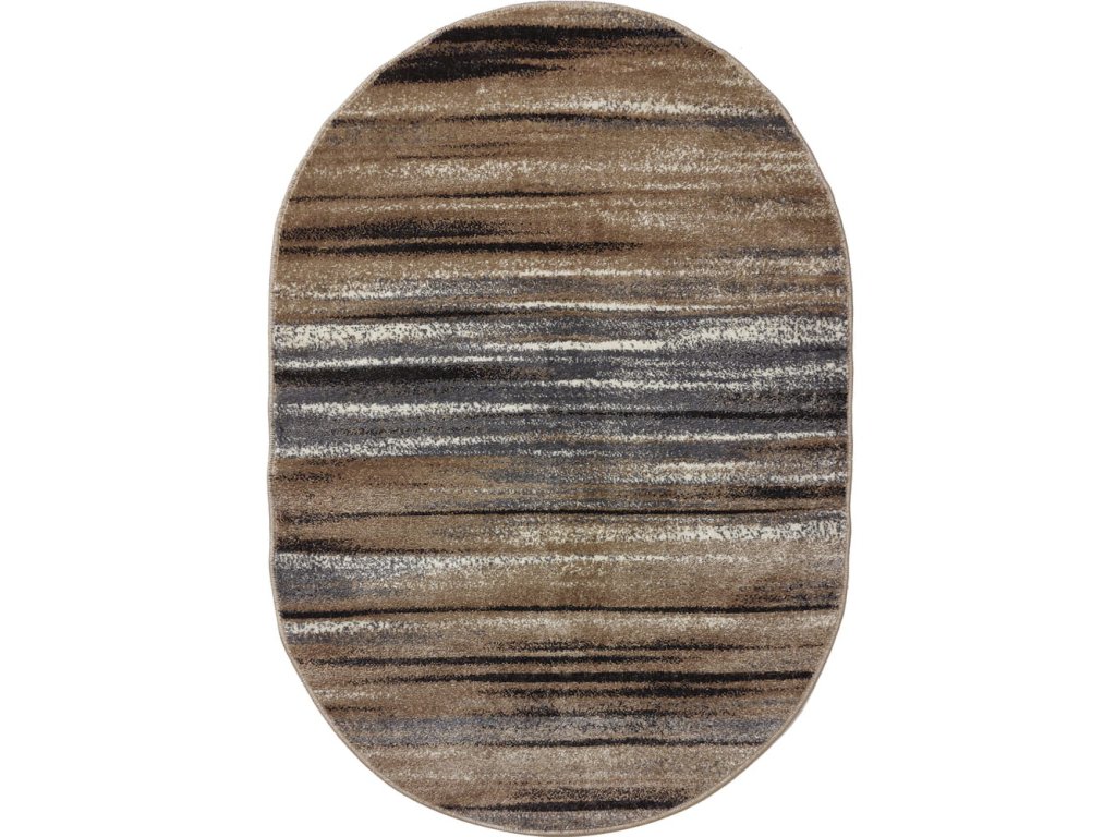 Oválný kusový koberec v moderním barevném provedení.