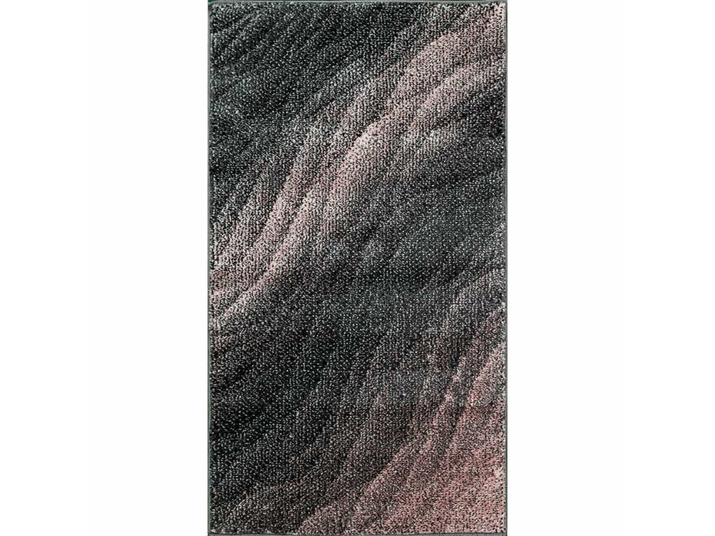 Moderní šedý kusový koberec vkusně doplněný růžovými liniemi z kvalitní polypropylenové příze a friseé efektem.