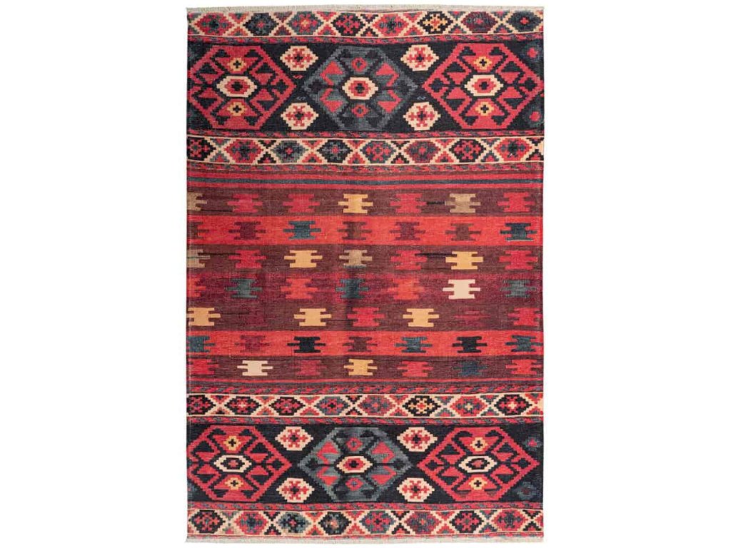 Stylový koberec s etnickým vzorem v teplých, zemitých barvách. Koberec je vyroben ze směsi recyklované bavlny a polyesteru. Zároveň je koberec, díky možnosti praní, i velmi praktický.