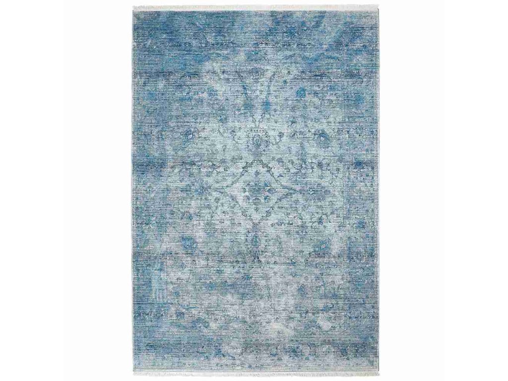 Modrý koberec Laos má působivý vzor s ornamentem ve "Vintage" stylu.