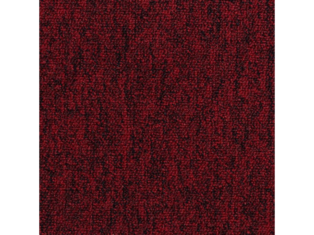 Objektový, metrážový koberec červené barvy.