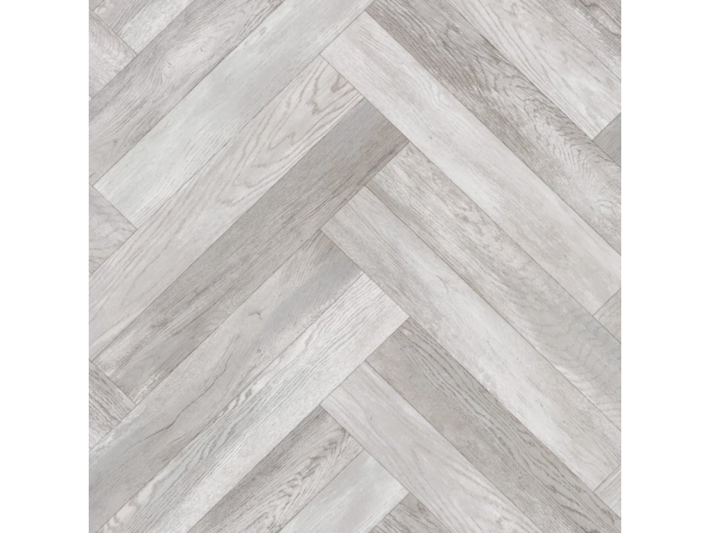 Měřená, vinylová podlahovina s moderním vzorem rybí kosti v šedé barvě vhodná do bytových prostor s nízkou námahou. Jako každá vinylová podlahovina, i tato je plně odolná vůči vodě a velmi snadno se udržuje.