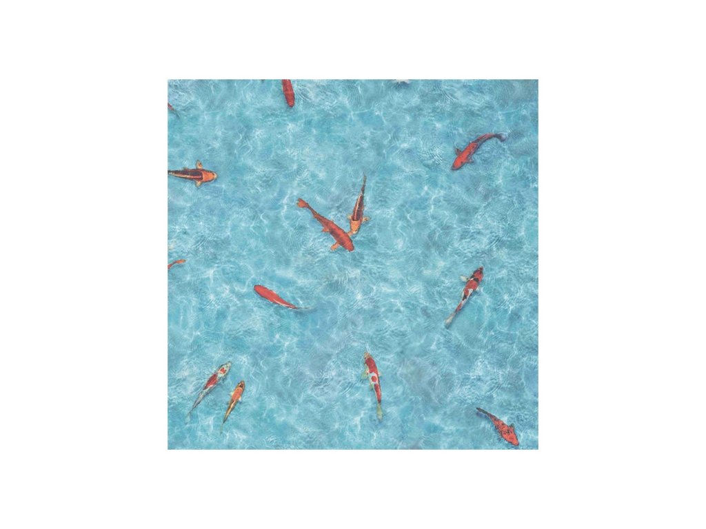 Vinylová podlaha v roli s přírodním motivem kaprů Koi.