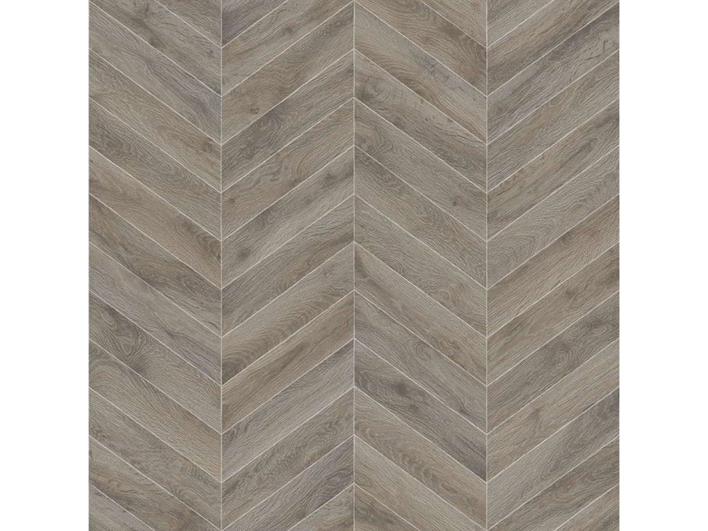 Vinylová podlaha v šedém provedení se stromečkovým vzorem.