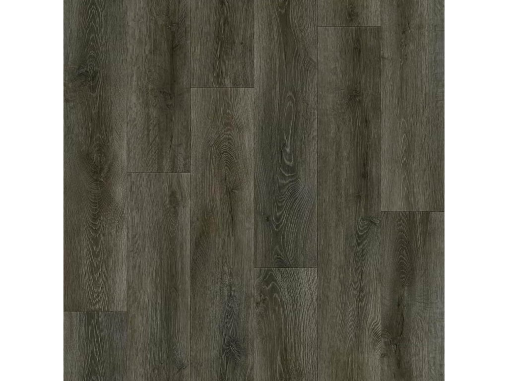 Metrážová vinylová podlaha s tmavým dřevěným vzorem a autentickou strukturou.