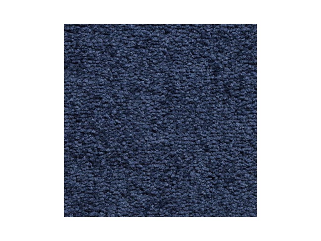 Tmavě modrý metrážový koberec se střiženým vlasem.