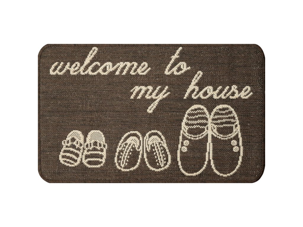Rohož Leon se vzorem bot a vítacím nápisem v hnědé barvě je vyrobena z polypropylenové příze ve šňůrkovém provedení díky čemuž je praktická a nenáročná na údržbu. Rohož je vhodnější pro použití v interiéru, ale můžete ji dát také před dveře v chodbách bytových domů.