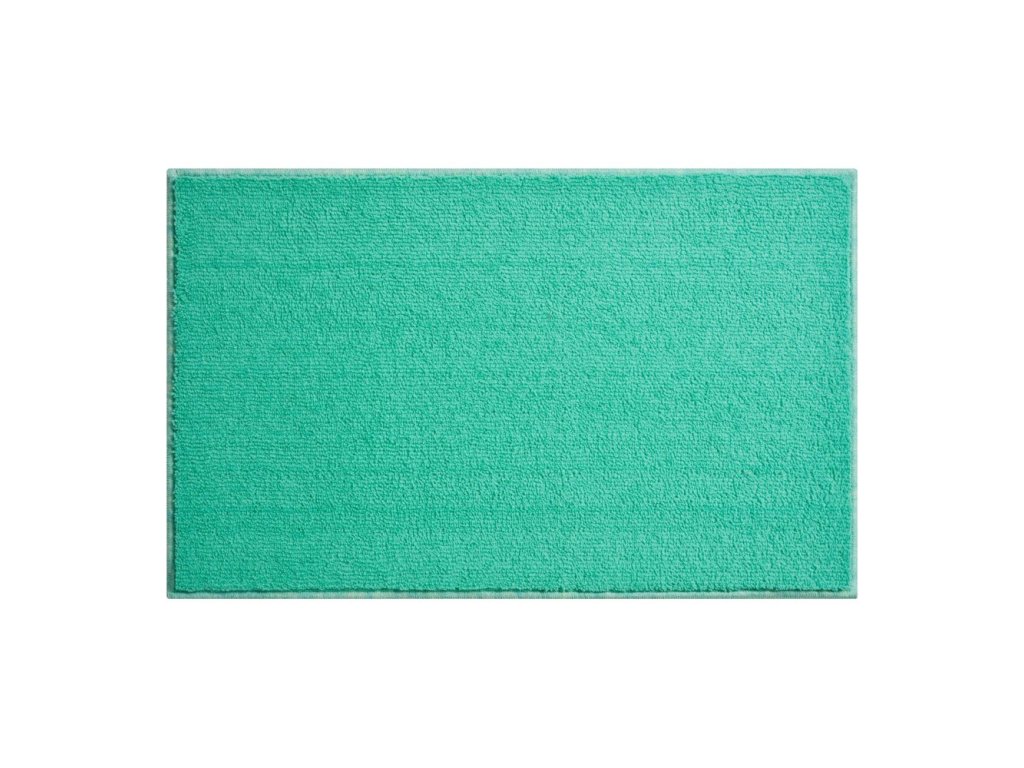 Koupelnový koberec Roman mentolové barvy výborně absorbuje vodu a rychle schne. Rohož neobsahuje žádné škodlivé materiály, je stálobarevná a je možné ji prát v pračce.