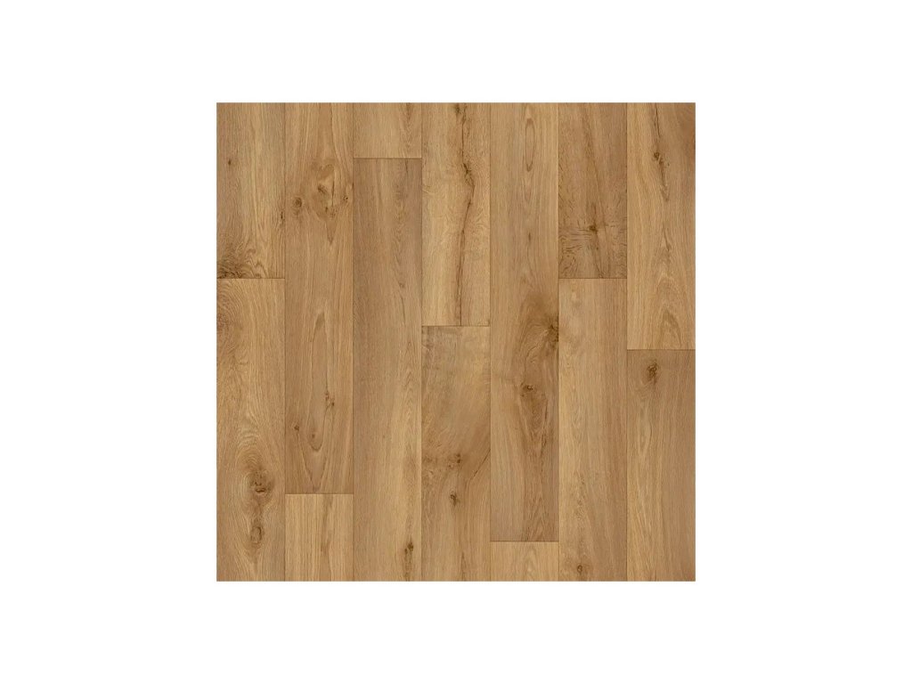 Kvalitní vinylová podlaha ve vzoru dřeva zlatavé barvy a šířkou lamely 14,3cm.