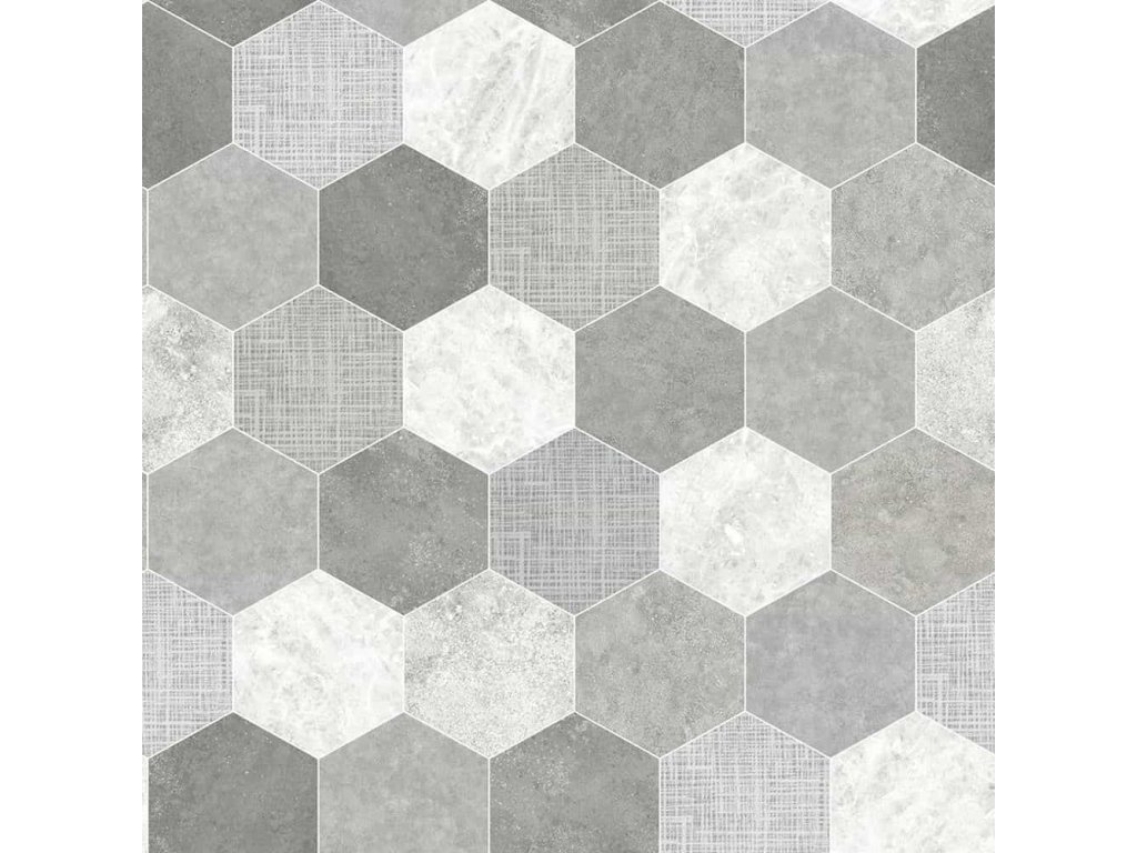 Šedá vinylová podlaha s dekorem včelí plástve.